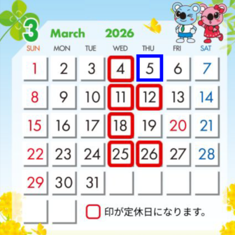 03月定休日のお知らせ