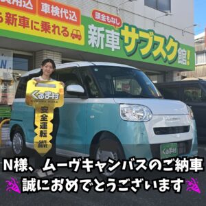 この度は増車とのことでご来店頂きまして誠にありがとうございました。 こちらのムーヴキャンバスを気に入っていただき即日でご契約いただきました。 ご転居も御座いましたが必要書類も迅速にご準備頂きスムーズにご納車することができました☺ 新しいお車でのカーライフを楽しんでいただければと思います☺ これからも末永いお付き合いのほど、よろしくお願い申し上げます