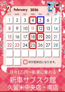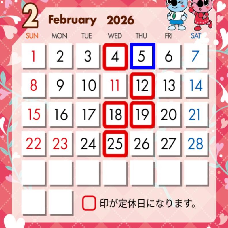 2026年2月の営業日のご案内です🎌